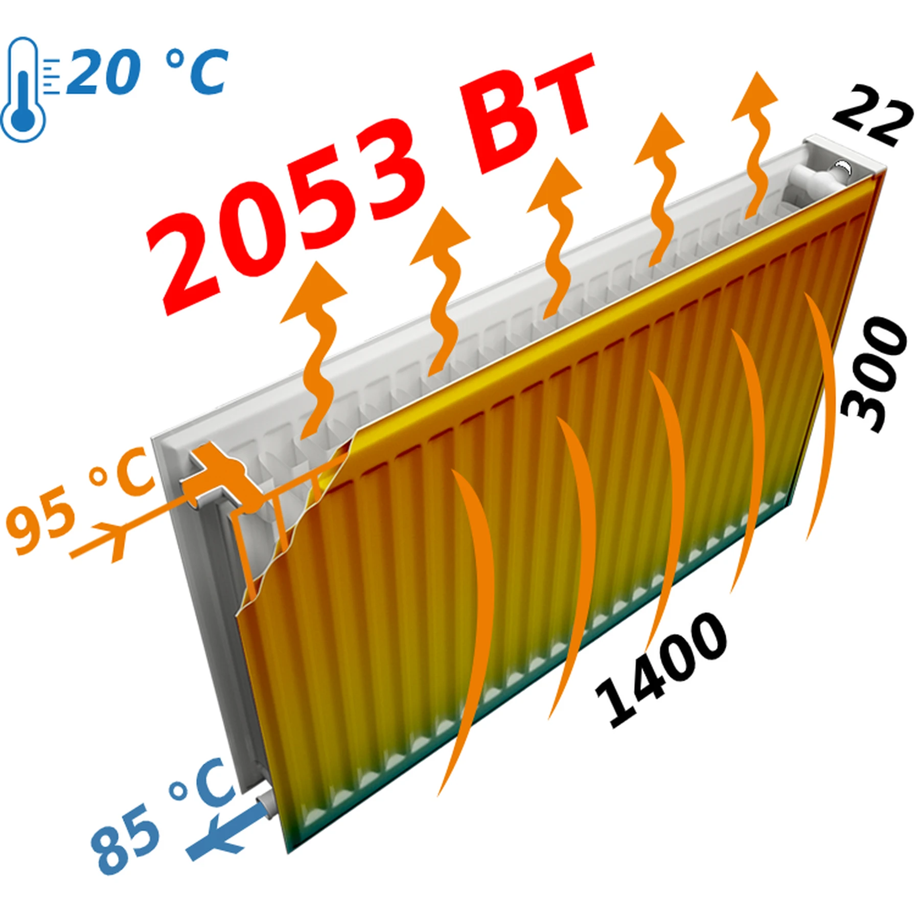 Радіатор сталевий панельний тип 22 (бок) 300х1400 KALDE 0322-rad-301400 2053Вт