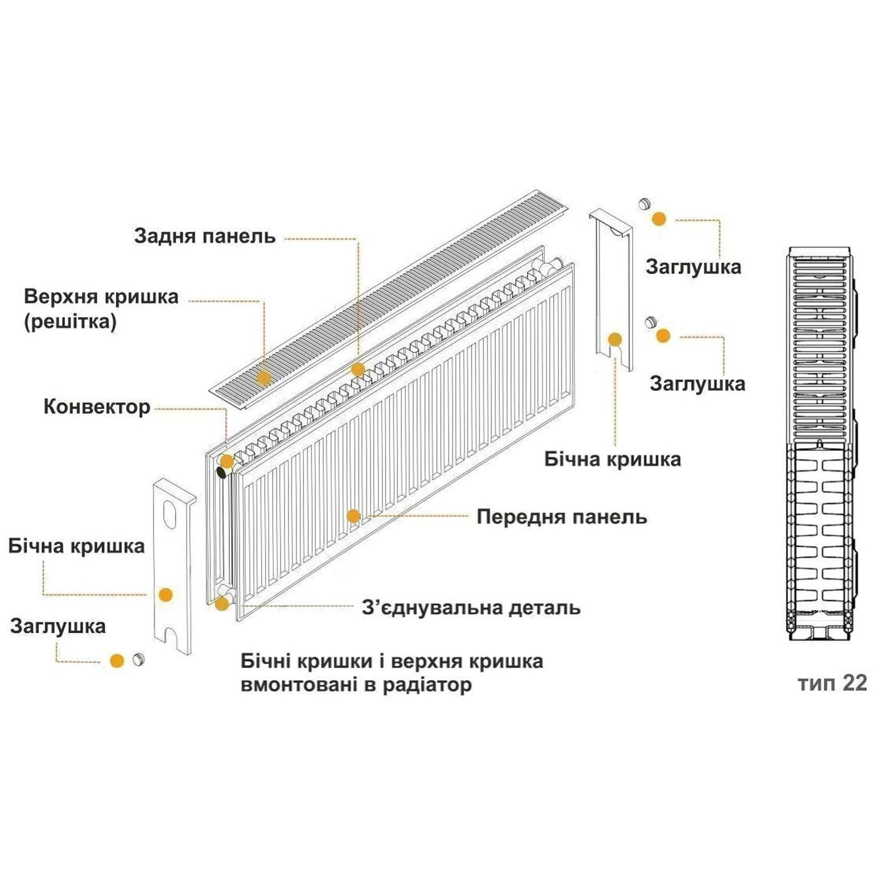 Радіатор сталевий панельний тип 22 (бок) 300х1800 KALDE 0322-rad-301800 2639Вт