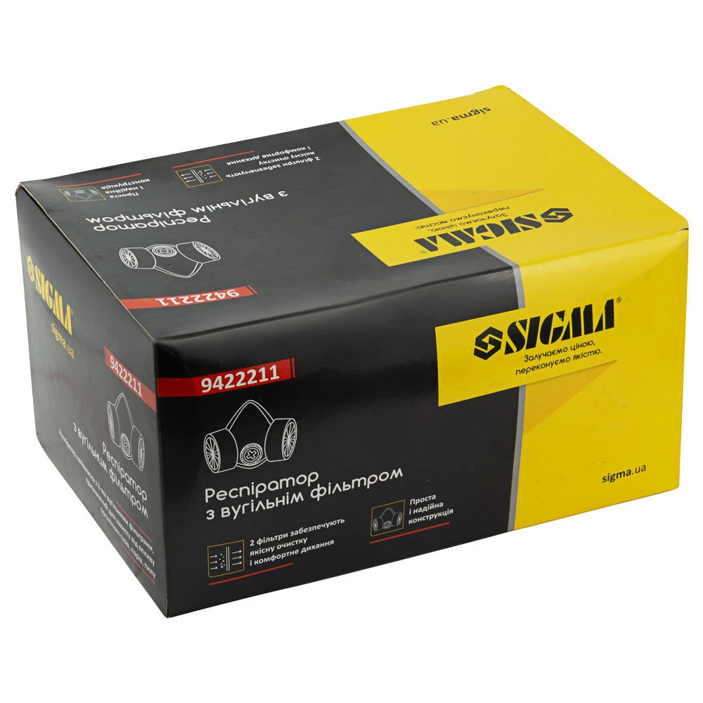 Респіратор з вугільним фільтром (2 фільтра) Sigma (9422211) призначений для захисту від пилу, аерозолів, диму. 2 фільтри забезпечують хорошу очистку, легке і комфортне дихання. Проста і надійна конструкція. Є можливість заміни фільтрів.