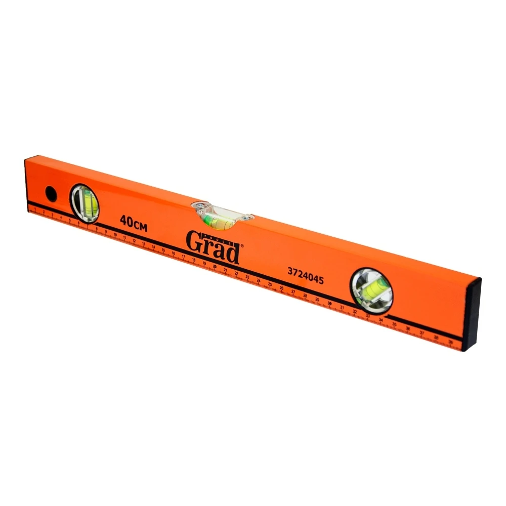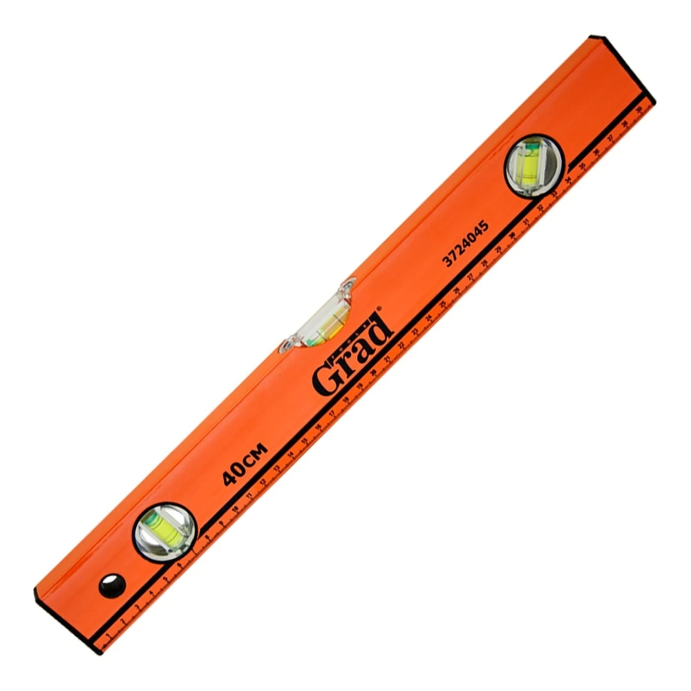 Рівень полегшений 3 вічка 40см GRAD (3724045) призначений для визначення горизонтального і вертикального розташування поверхонь, а також горизонтальності підлоги. Оснащений 3 ампулами (для вимірювання в трьох площинах; одна з ампул здатна повертатися на 360°, що дозволяє виставляти необхідний кут) з фрезерованной поверхнею.