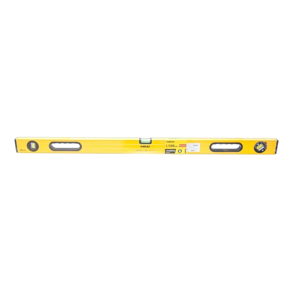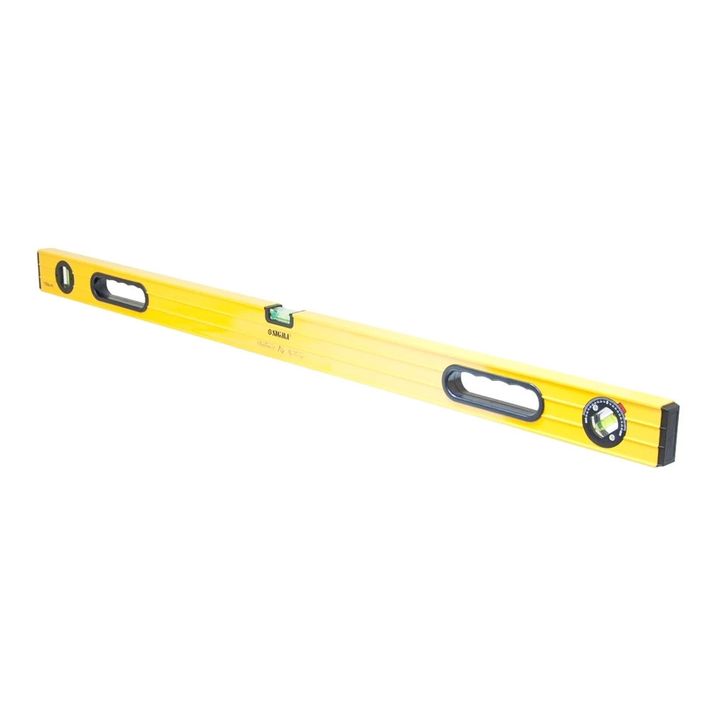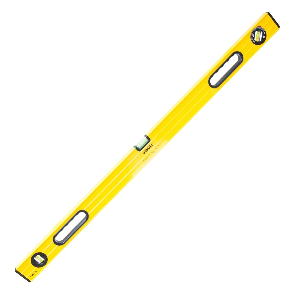 Рівень з поворотною капсулою, 2 рукоятки 100см SIGMA (3723101) призначений для визначення горизонтального і вертикального розташування поверхонь, а також горизонтальності підлоги, балок і прогонів. Виготовлений з алюмінію, має лінійку і три ампули. Допустиме відхилення: 0.057 градуса (що при правильному розташуванні еквівалентно 1.0мм на 1м).