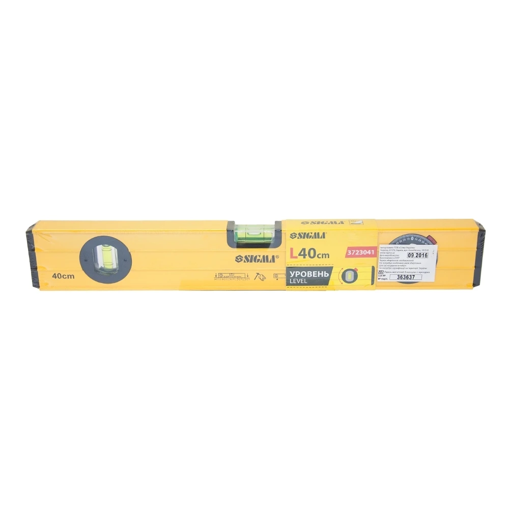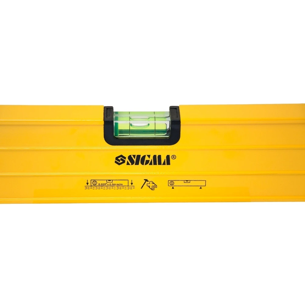 Рівень з поворотною капсулою 40см SIGMA (3723041) призначений для визначення горизонтального і вертикального розташування поверхонь, а також горизонтальності підлоги, балок і прогонів. Виготовлений з алюмінію, має лінійку і три ампули. Допустиме відхилення: 0.057 градуса (що при правильному розташуванні еквівалентно 1.0мм на 1м).