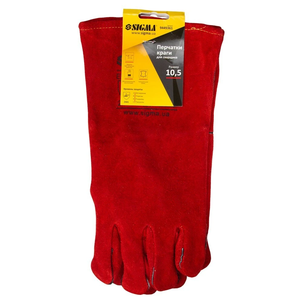 Рукавички краги зварника р10.5, клас ВС, довжина 35см (червоні) Sigma (9449361 призначені для захисту рук при проведенні зварювальних робіт, захисту від механічних і термічних впливів.