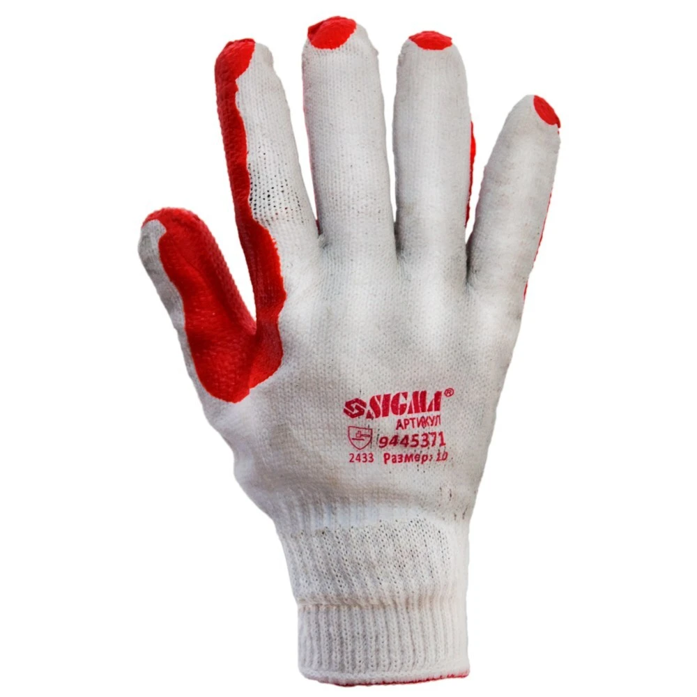 Рукавички скляра (манжет) SIGMA (9445371) - трикотажні з латексним покриттям для захисту рук від вологи і механічних впливів.