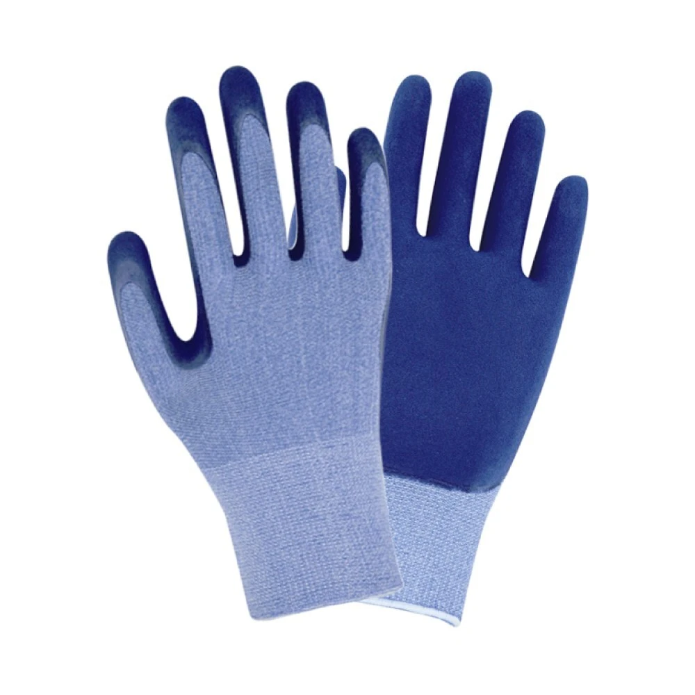 Рукавички трикотажні з частковим латексним покриттям крінкл р10 (сині, манжет) SIGMA (9445501) призначені для захисту від механічних впливів, від порізів і мають хороше зчеплення як з сухими так і з вологими поверхнями.