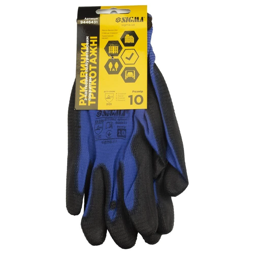 Рукавички трикотажні з частковим ПУ покриттям р10 (синьо-чорні манжет) SIGMA (9446431)