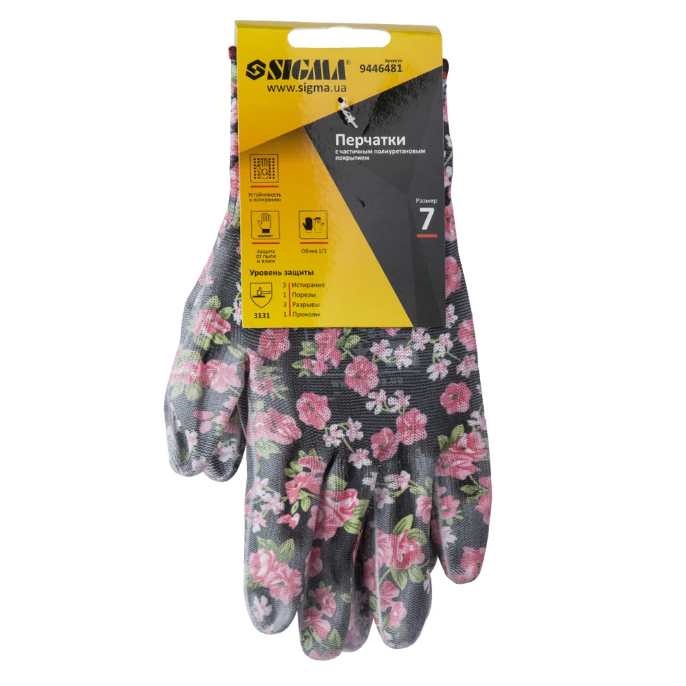 Рукавички трикотажні з частковим ПУ покриттям р7 (чорні, манжет) SIGMA (9446481) призначені для захисту рук від механічних впливів.