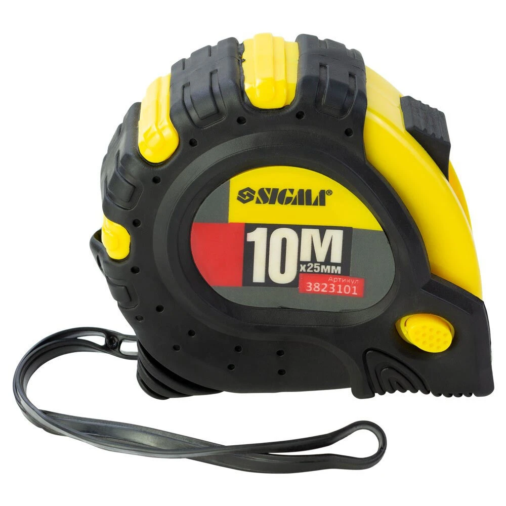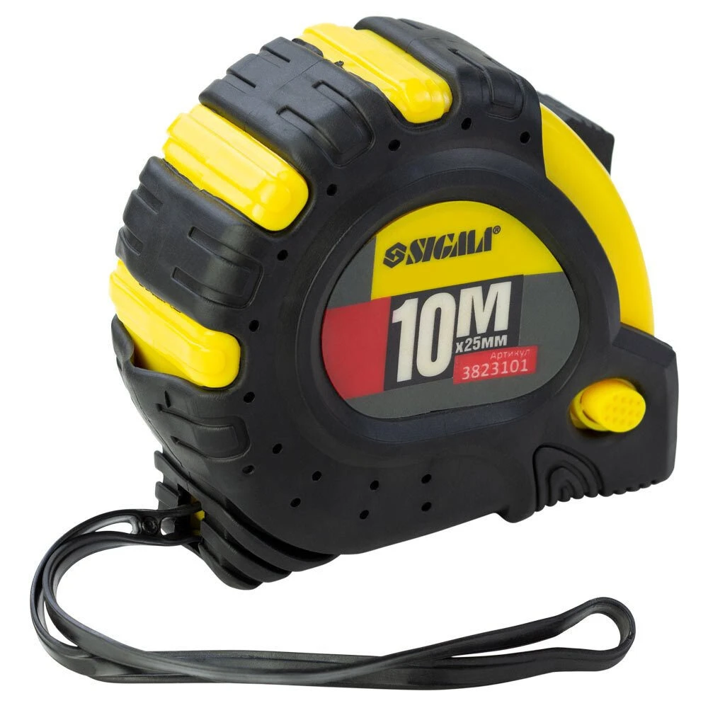 Рулетка магнітна фіксатор + гальмо 10м×25мм SIGMA (3823101) функції гальма і блокування виконуються окремими кнопками. Надійне ударопоглинання, швидке повернення стрічки і плаваючий кінцевий захват.