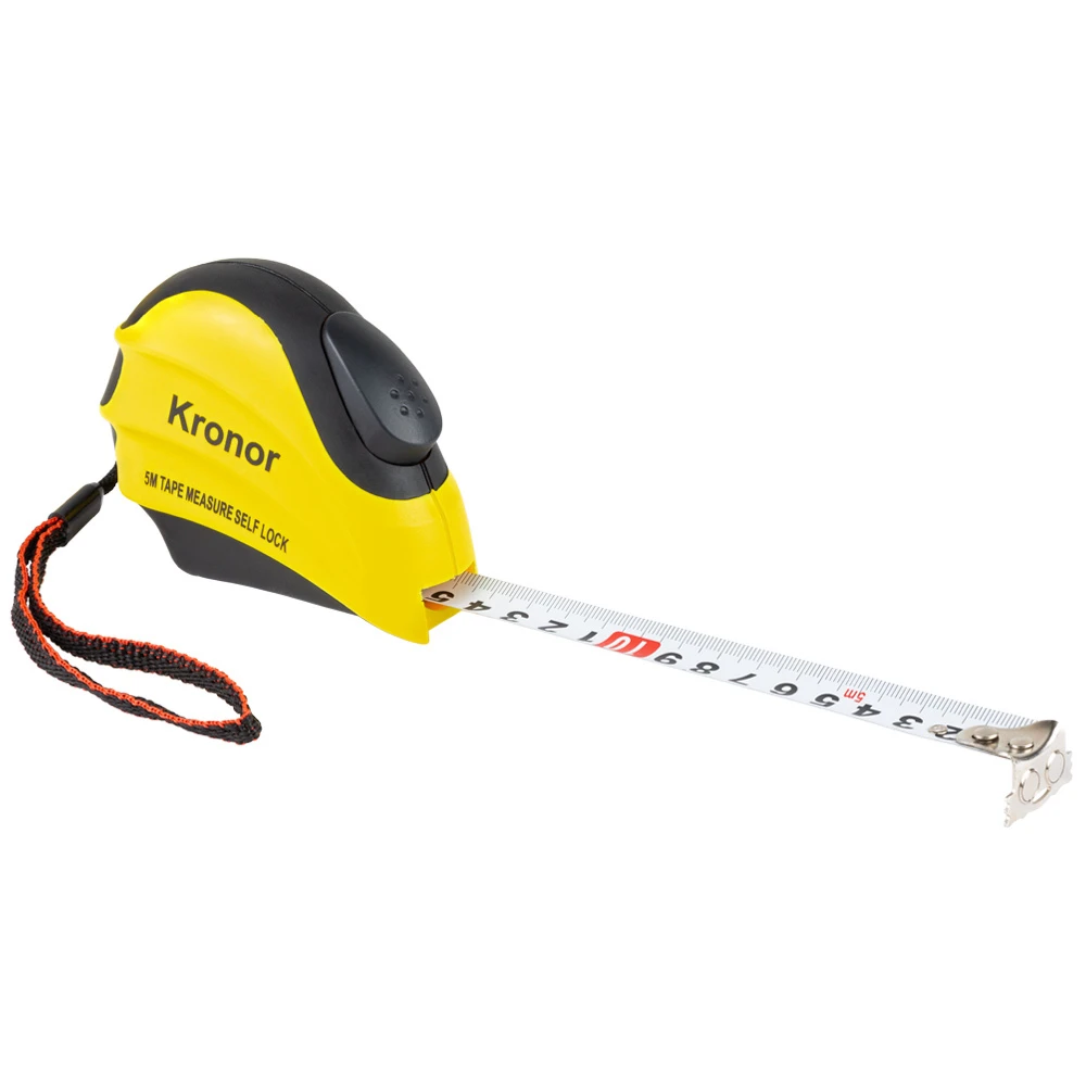 Рулетка магнітна обгумована з автостопом 5м×19мм KRONOR (3824011) призначена для вимірювальних робіт. Прогумований корпус ергономічної форми з металевим поясним затиском. Кнопка "стоп" при натисканні забеспечує вільне змотування полотна. Оснащена автостопом і намагніченим зацепом, який забеспечує зручність роботи з металевими предметами.