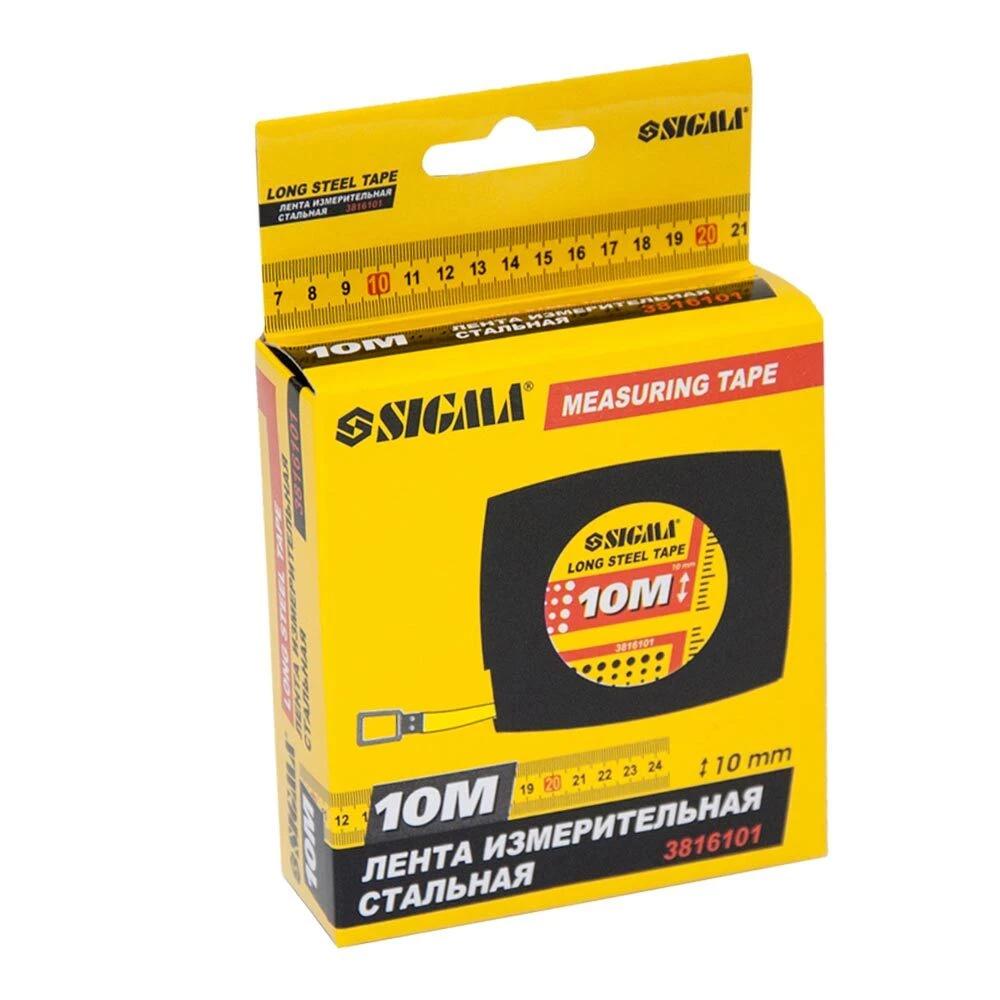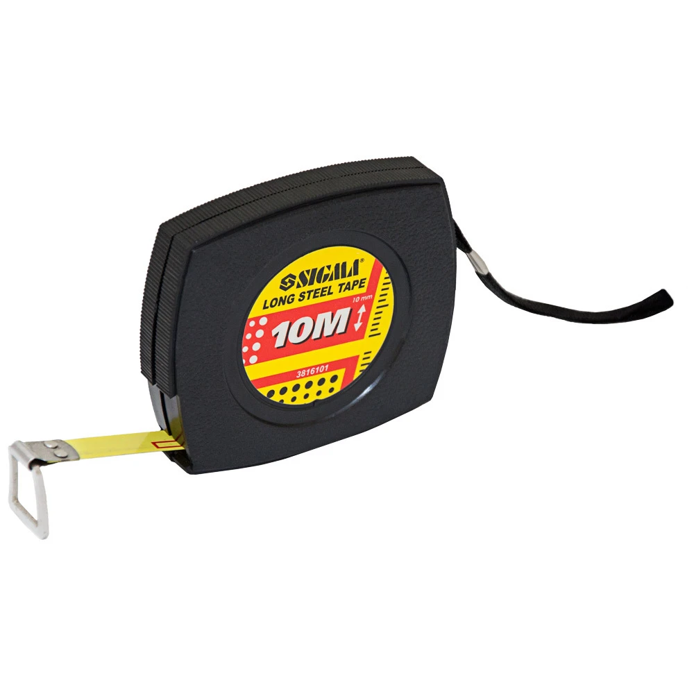 Рулетка сталева стрічка 10м×10мм SIGMA (3816101) має корпус закритого типу виготовлений з полікарбонату з ремінцем для носіння на руці.