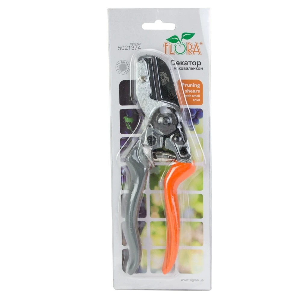 Секатор з ковадлом 200мм FLORA (5021374) має спеціальну конструкцію, завдяки якій відмінно рубає сухі та тверді гілки діаметром до 20мм.