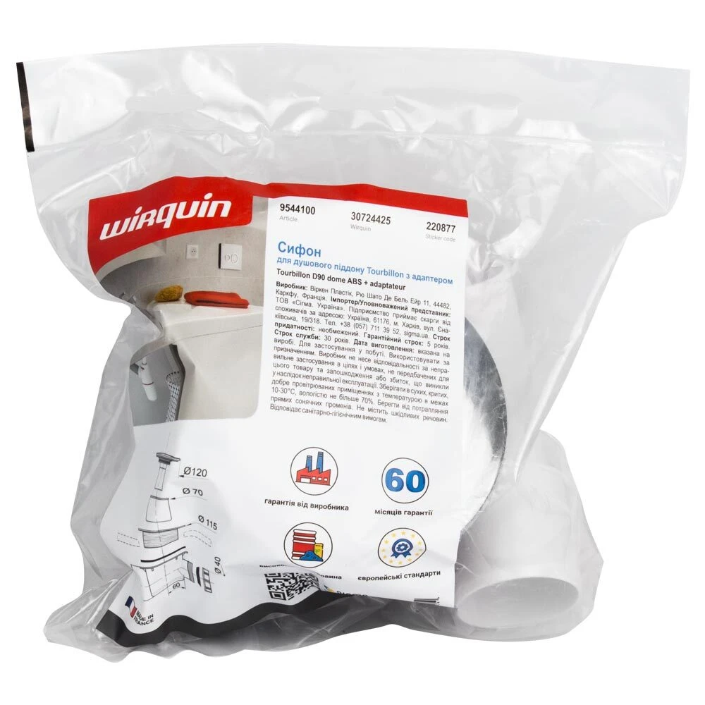 Сифон для душового піддону Tourbillon Ø90мм з адаптером Ø40/50мм WIRQUIN (9544100)