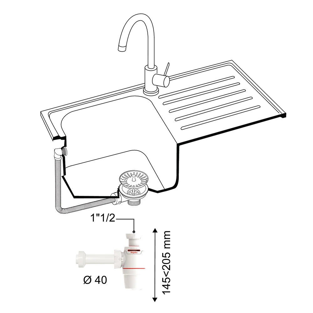 Сифон для кухонної мийки Neo Air 1½"ר40мм з відведенням WIRQUIN (9542330)