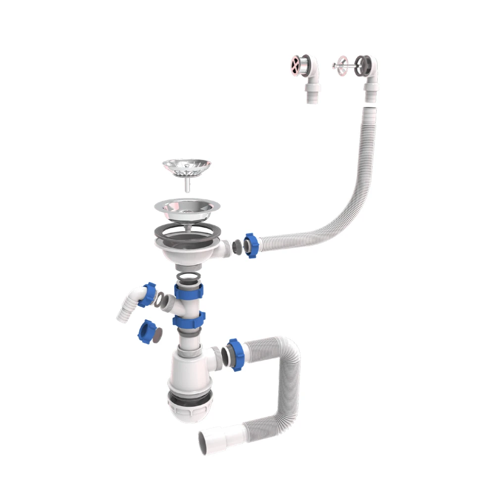 Сифон для кухонної мийки з нержавіючим випуском 3½" виводом під пральну машину, круглим переливом і гнучким відведенням Ø40/50мм TAU (9842520)
