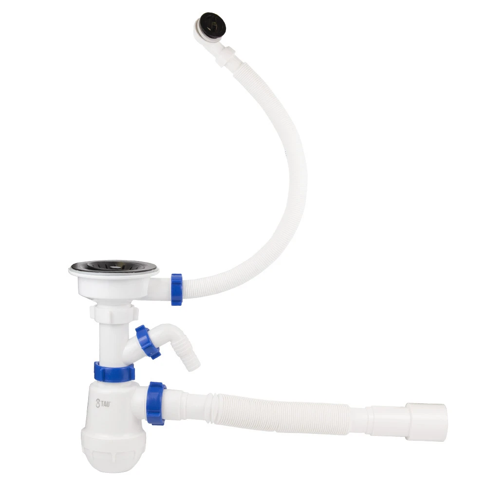 Сифон для кухонної мийки з пластиковим випуском 3½" виводом під пральну машину круглим переливом і гнучким відведенням Ø40/50мм (чорний) TAU (9842820)