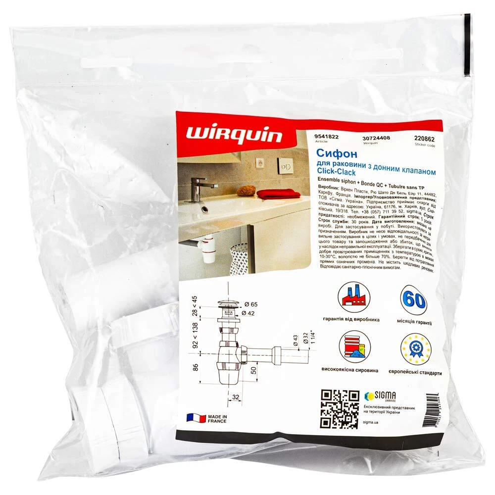 Сифон для раковини з донним клапаном Click-Clack 1¼"ר32мм WIRQUIN (9541822)