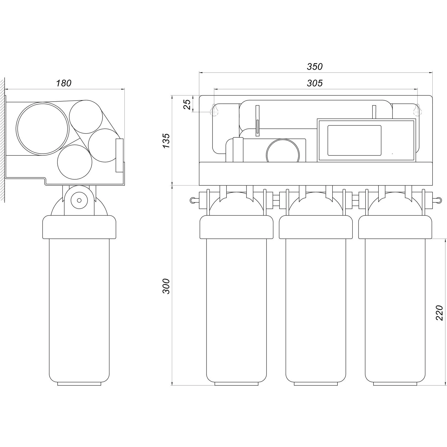 Картриджі попереднього очищення забезпечують більш тривалу роботу зворотноосмотичної мембрани, а пост-фільтр і мінералізатор покращують органолептичні і хімічні властивості води -відповідно. Даний метод очищення видаляє 99% містяться в воді шкідливих речовин.