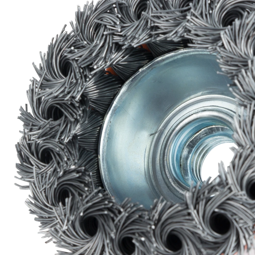 Чашоподібні щітки рекомендують для обробки великих ділянок, зварних швів та листового металу.