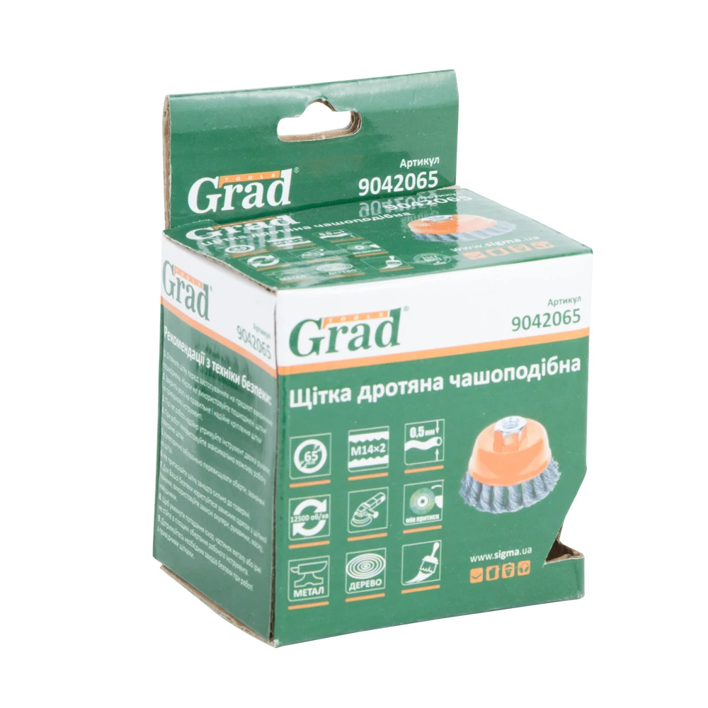 Щітка дротяна чашоподібна Ø65мм М14×2 мм (сталева кручена) GRAD (9042065)