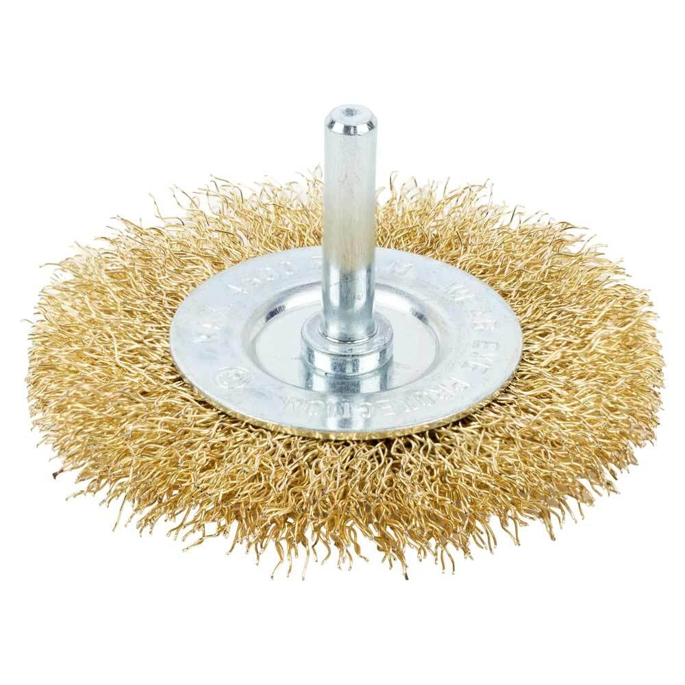 Щітка дротяна дископодібна Ø75мм хвостовик Ø6мм (латуньована) GRAD (9032075)