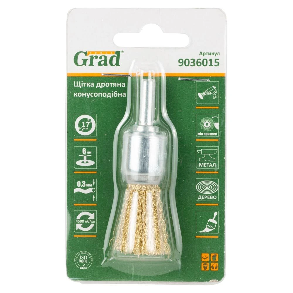 Щітка дротяна конусоподібна Ø17мм хвостовик Ø6мм (латуньована) GRAD (9036015)