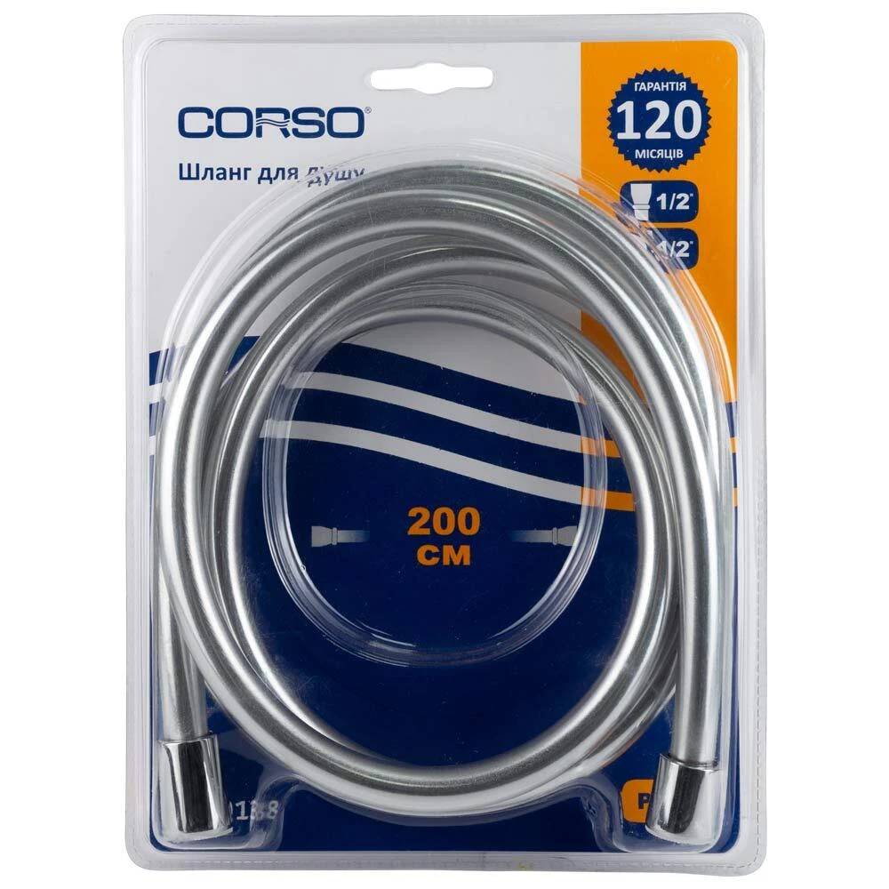 Шланг для душу 1/2" ПВХ 3-х шаровий з підшипником сріблястий 200см CORSO XB-0138 (9691613)
