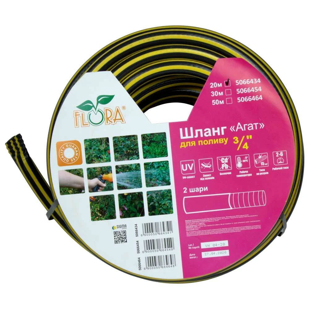 Шланг для поливу Агат 3 шари армований 3/4" 20м FLORA (5066434)