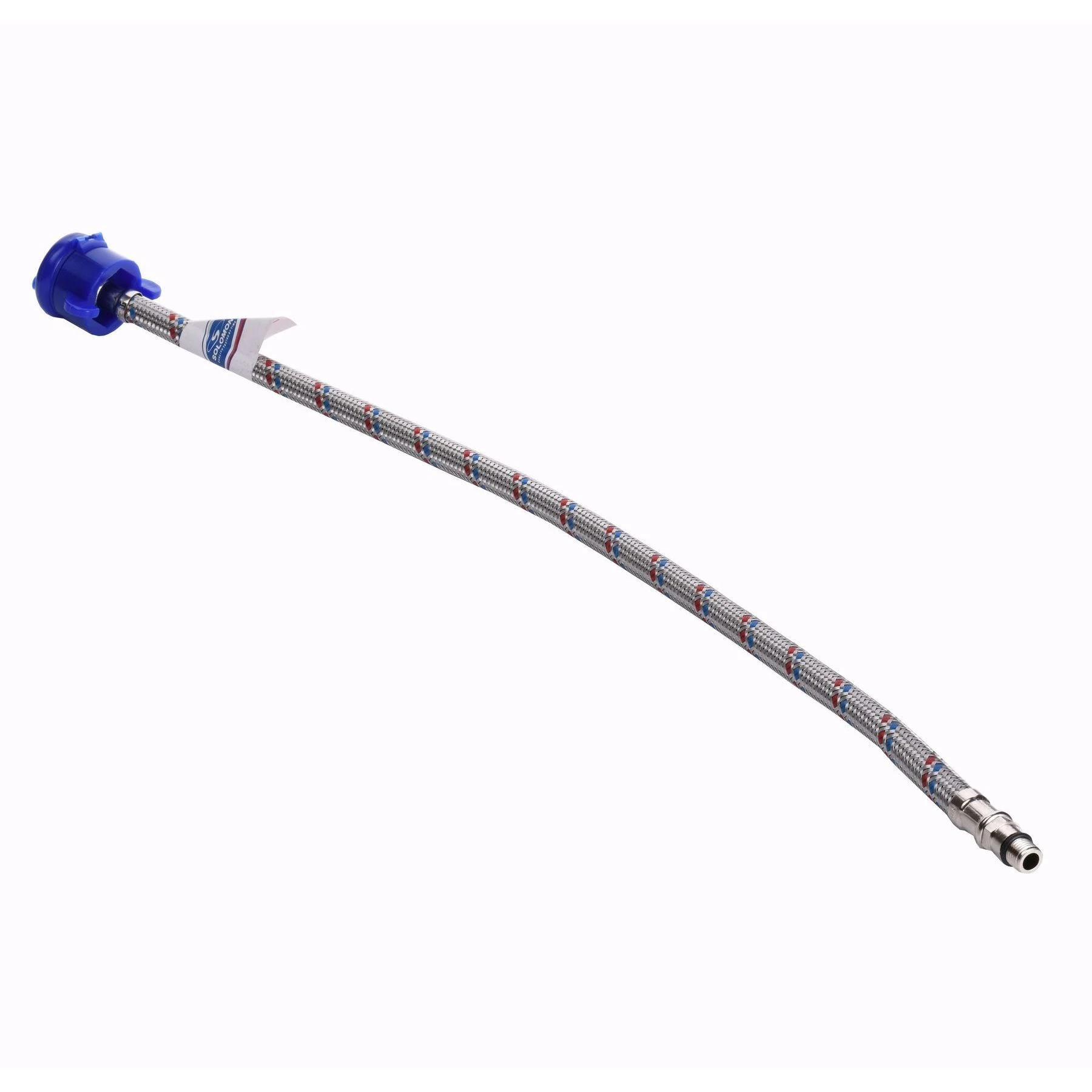 До ніпеля за допомогою обтискної сталевої гільзи надійно приєднується обплетений гумовий шланг. Шланг проводиться з етиленпропіленового каучуку EPDM, так званої нетоксичної гуми. Цей матеріал не виділяє шкідливі речовини при контакті з водою, завдяки чому дозволений до використання в системах питного водопостачання. EPDM стійкий до впливу високих температур, що дозволяє застосовувати гнучкі шланги Solomon при монтажі приладів опалення і гарячого водопостачання (до + 95° С).