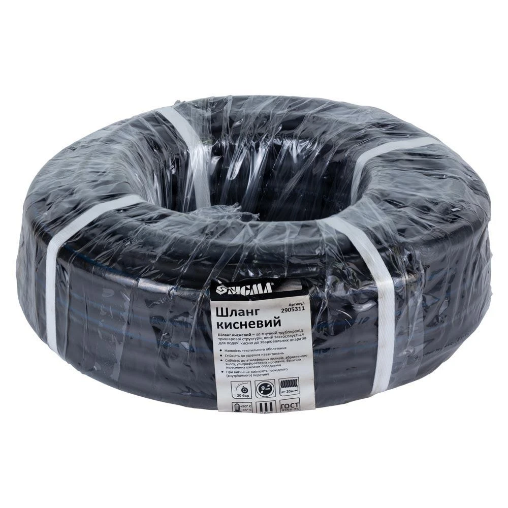 Шланг кисневий в бухті Ø9×18мм 20м (III клас) SIGMA (2905311) - це гнучкий трубопровід, який застосовується для подачі кисню до зварювальних апаратів. Розрахований на тиск 2-6 МПа.