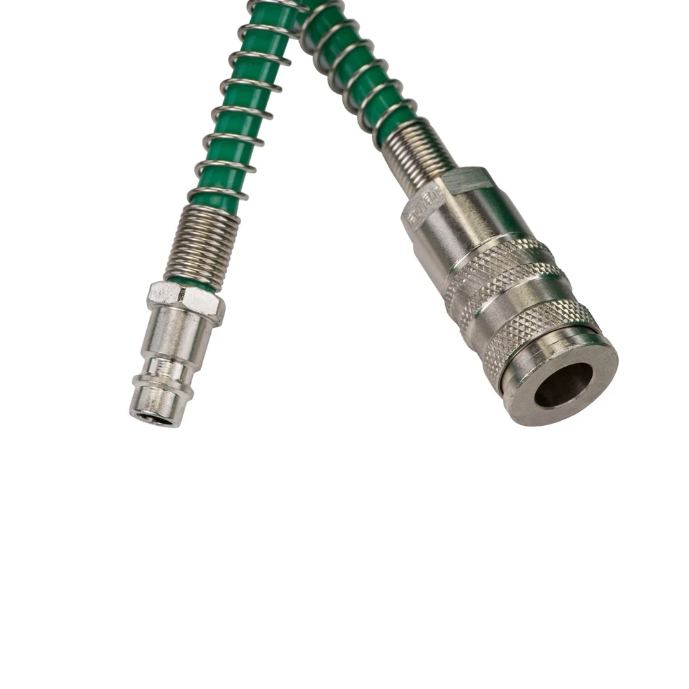 Оснащений посиленими швидкороз'ємними сполуками для швидкого підключення до компресора і пневматичного інструменту.