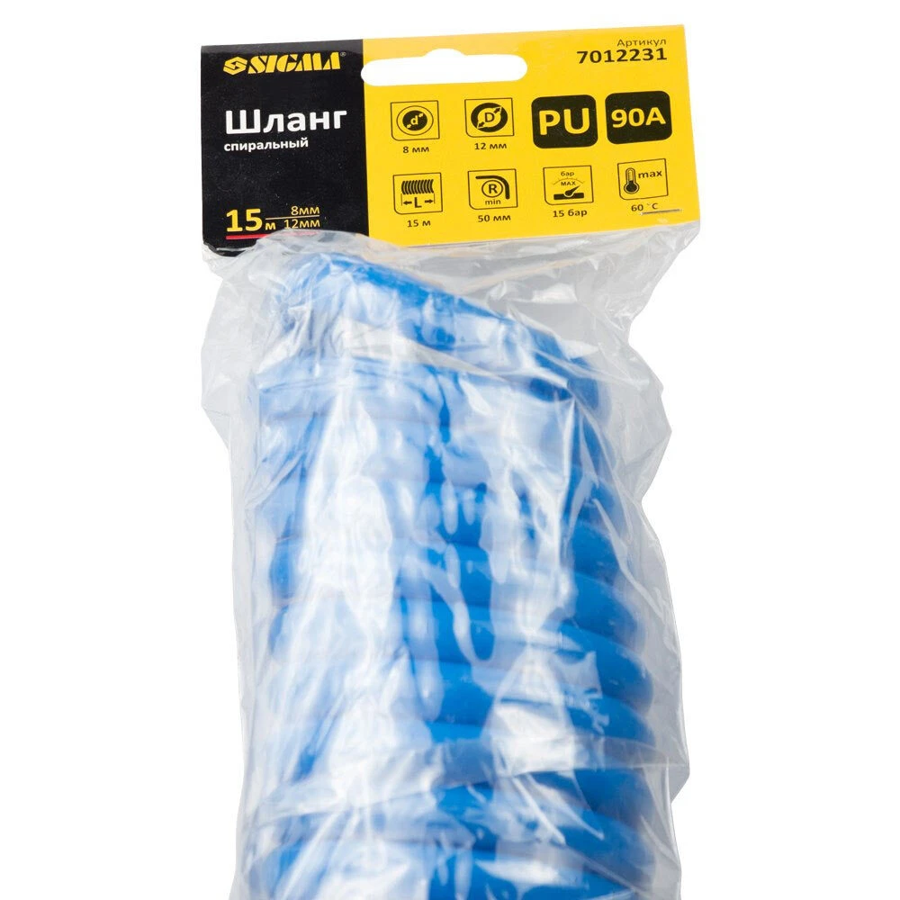 Шланг спіральний поліуретановий (PU) 15м 8×12мм SIGMA (7012231) використовується для передачі повітря в пневматичних системах стандартного тиску. Має хорошу стійкість до механічних впливів (перегини, здавлювання, скручування) і швидко відновлює свою первинну форму після зняття механічного впливу. Шланг не схильний до гідролізу і має хорошу стійкість до впливу озону, масел, палива та мікроорганізмів.