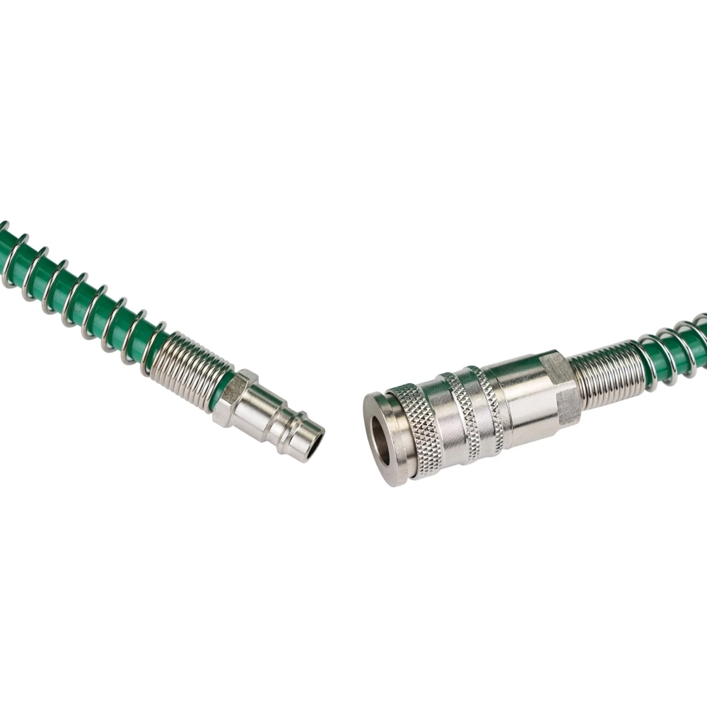 Оснащений посиленими швидкороз'ємними сполуками для швидкого підключення до компресора і пневматичного інструменту