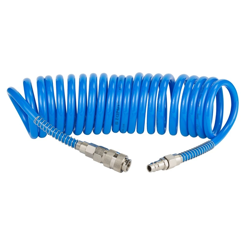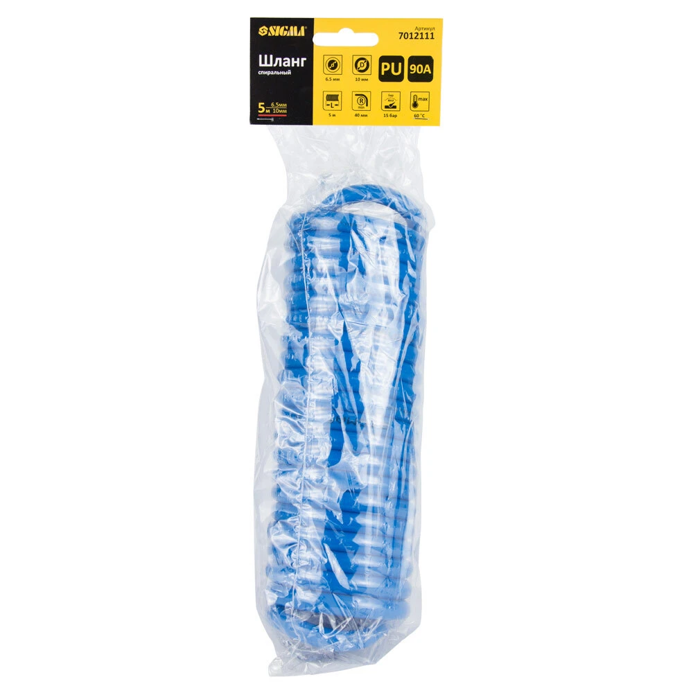 Шланг спіральний поліуретановий (PU) 5м 6.5×10мм SIGMA (7012111) використовується для передачі повітря в пневматичних системах стандартного тиску. Має хорошу стійкість до механічних впливів (перегини, здавлювання, скручування) і швидко відновлює свою первинну форму після зняття механічного впливу. Шланг не схильний до гідролізу і має хорошу стійкість до впливу озону і мікроорганізмів.