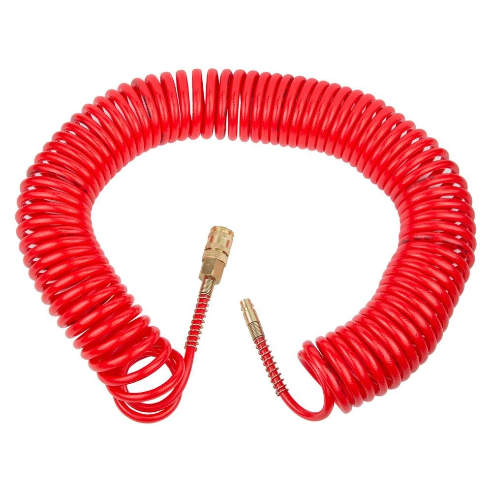 Шланг спіральний поліуретановий (PU) армований 15м 5.5×8мм REFINE (7013431) використовується для передачі повітря в пневматичних системах стандартного тиску. Має хорошу стійкість до механічних впливів (перегини, здавлювання, скручування) і швидко відновлює свою первинну форму після зняття механічного впливу. Шланг не схильний до гідролізу і має хорошу стійкість до впливу озону і мікроорганізмів.