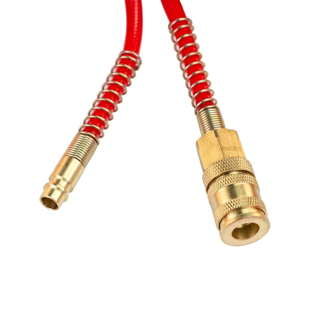 Оснащений латунними швидкороз'ємними сполуками з фіксатором для швидкого підключення до компресора і пневматичного інструменту