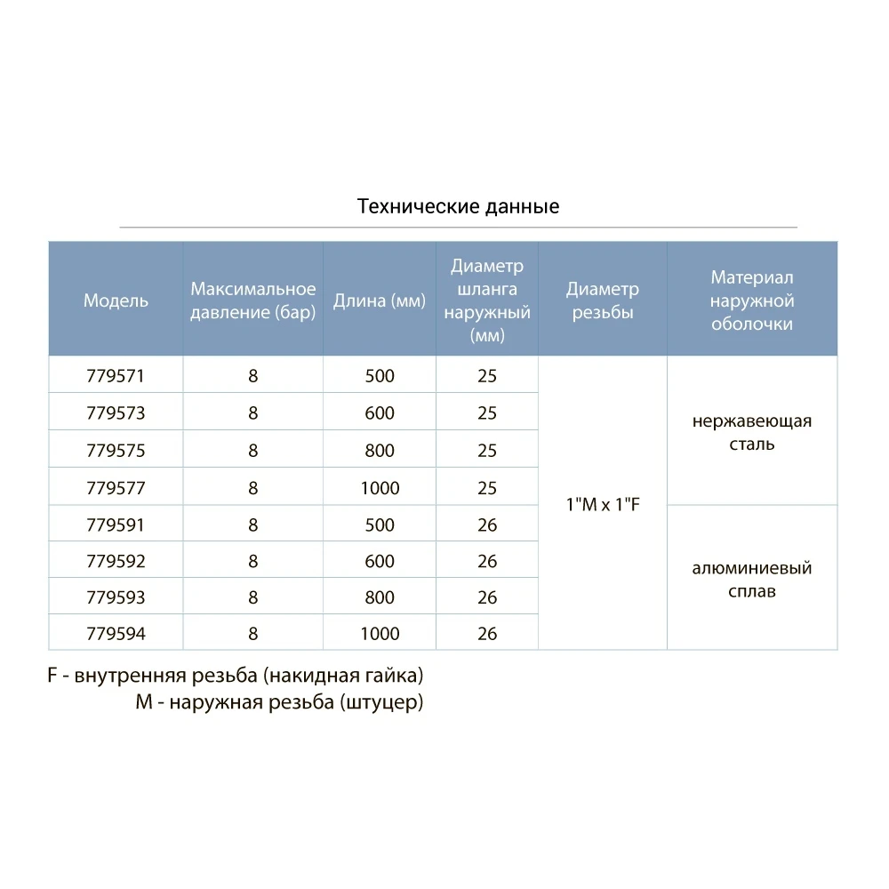 - Діаметр різьби: 1 "М × 1" F;