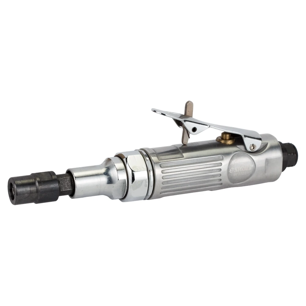 Шлифмашинка пряма пневматична 20000 об/хв SIGMA (6732231) підходить для шліфування, гравіювання, фрезерування, полірування та інших робіт. При оснащенні відповідними насадками можлива обробка виробів зі сталі, скла, кераміки та пластику. Інструмент працює на стисненому повітрі, що забезпечує високий робочий ресурс і стійкість до перевантажень.