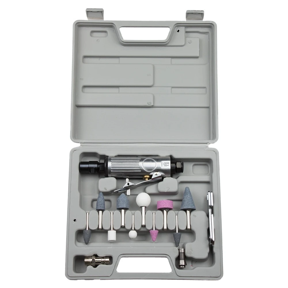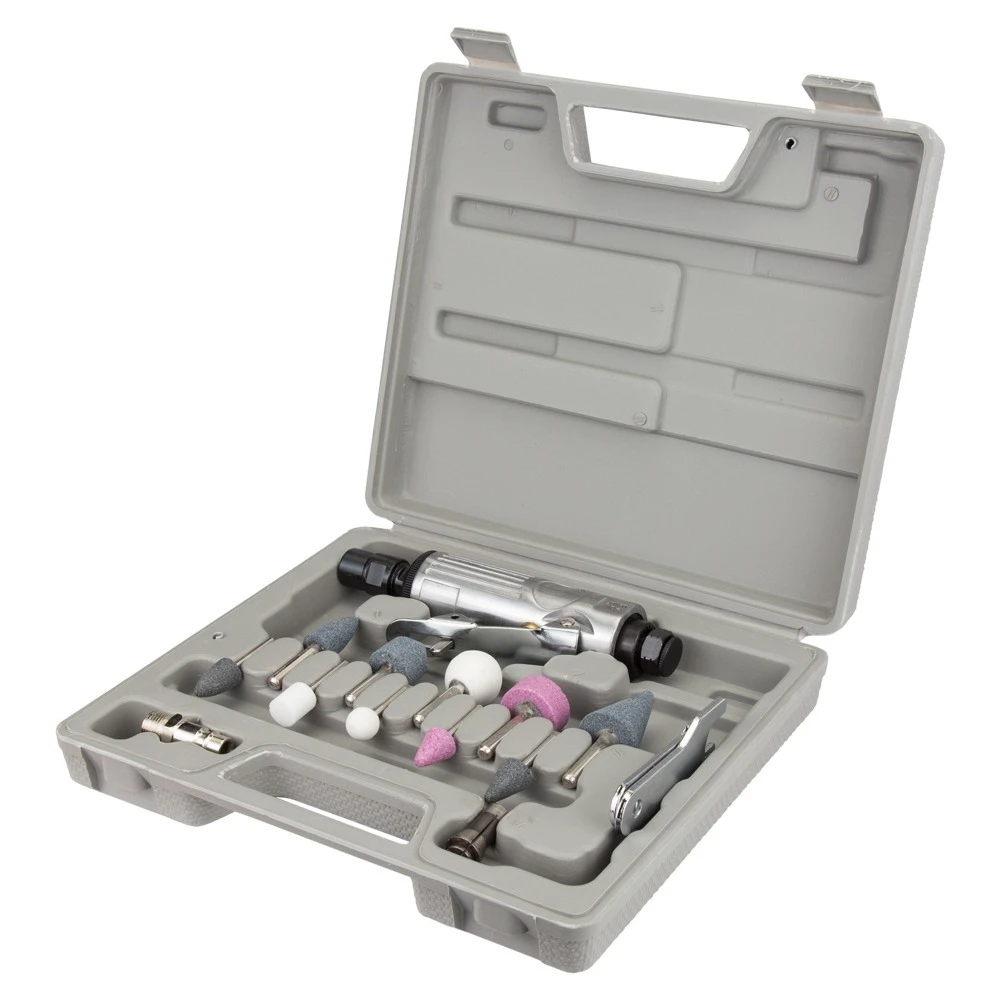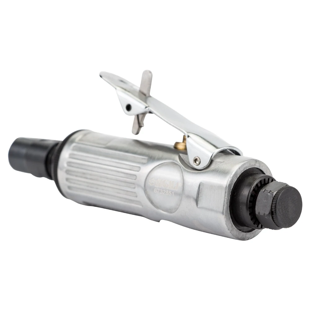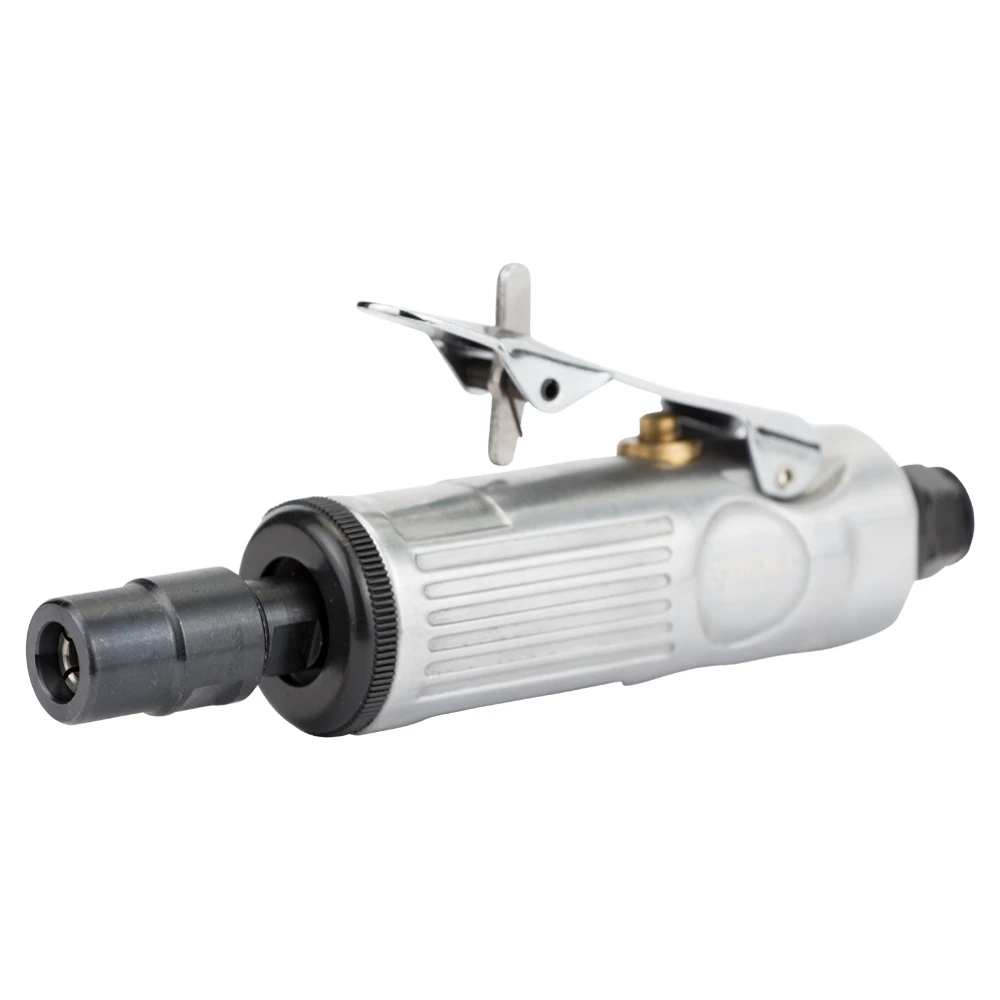 Шлифмашинка пряма пневматична з аксесуарами в кейсі 25000об/хв SIGMA (6732851) підходить для шліфування, гравіювання, фрезерування, полірування та інших робіт. При оснащенні відповідними насадками можлива обробка виробів зі сталі, скла, кераміки та пластику. Інструмент працює на стисненому повітрі, що забезпечує високий робочий ресурс і стійкість до перевантажень.
