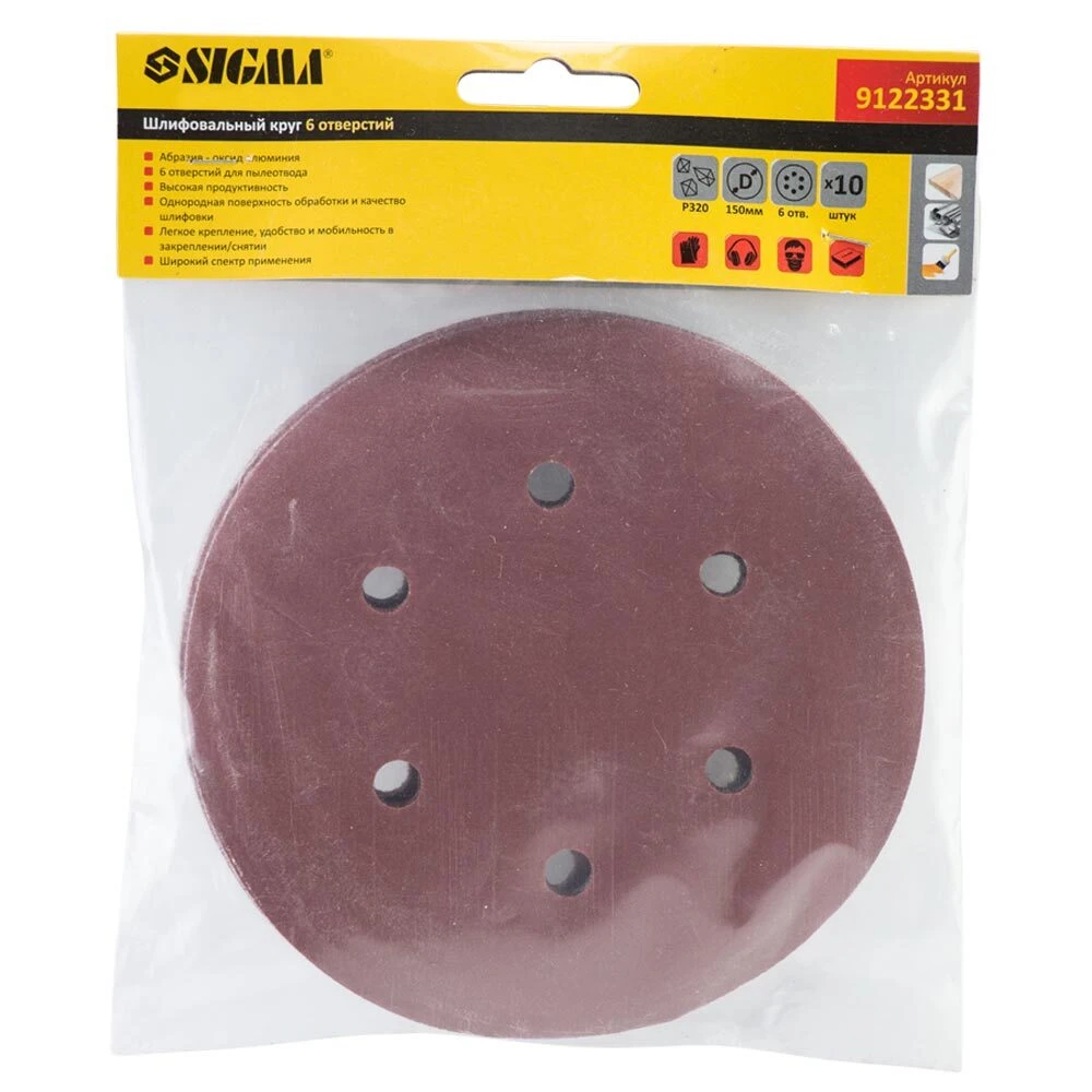 Шліфувальний круг 6 отворів Ø150мм P320 (10шт) SIGMA (9122331) призначений для сухого високошвидкісного шліфування. За властивостями є багатофункціональним абразивом. В основному застосовується в автомобільній промисловості, деревообробці і металообробці.
