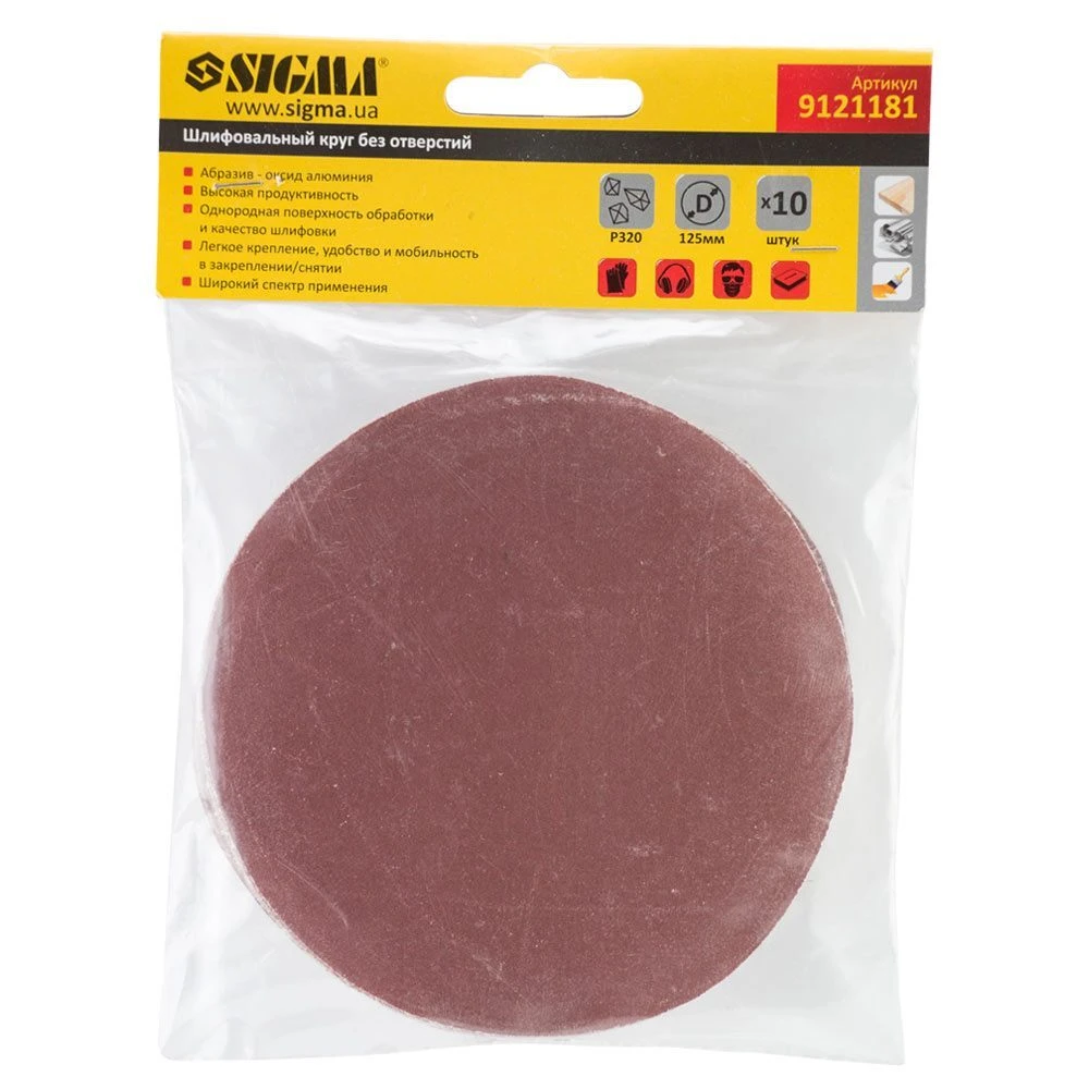 Шліфувальний круг без отворів Ø125мм P320 (10шт) SIGMA (9121181) призначений для сухого високошвидкісного шліфування. Невеликий діаметр круга дозволяє проводити обробку в важкодоступних місцях, робить його неперевершеним по легкості роботи і точності обробки. За властивостями є багатофункціональним абразивом. В основному застосовується в автомобільній промисловості, деревообробці і металообробці.