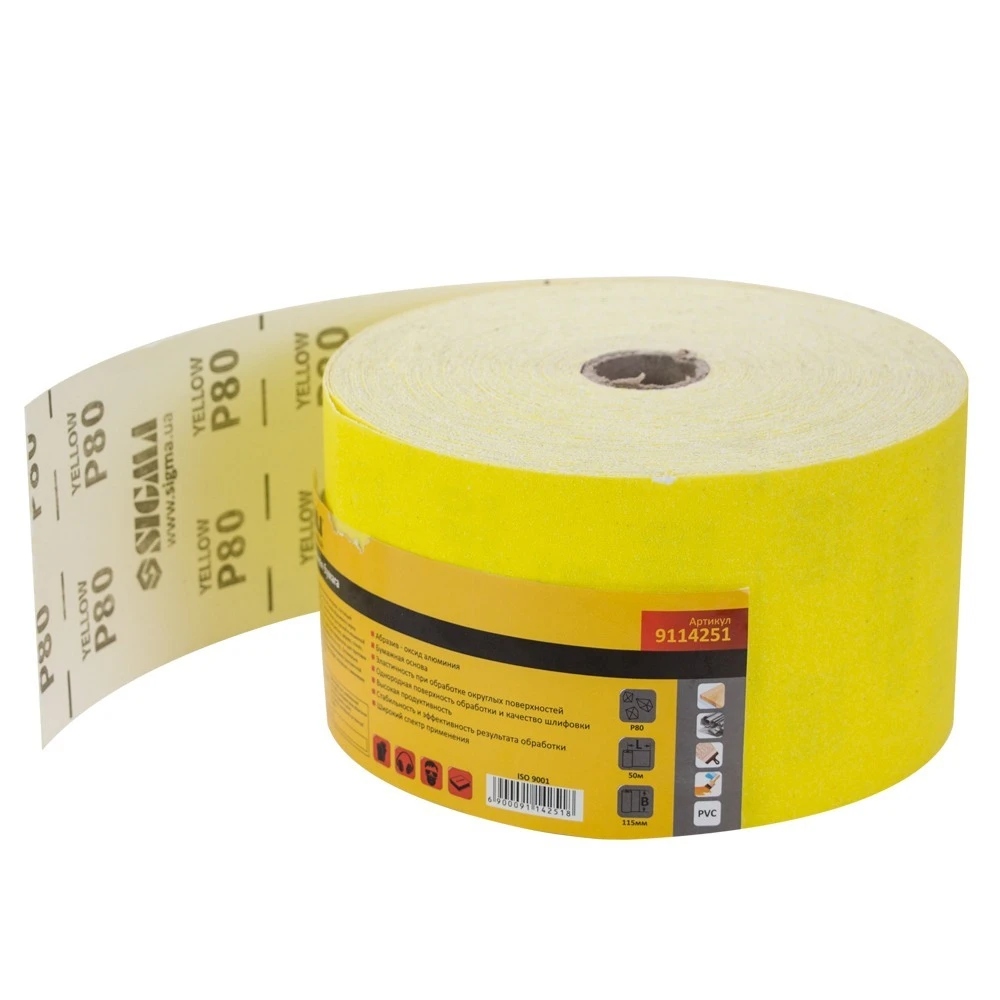 Шліфувальний папір рулон 115мм×50м P80 SIGMA (9114251)