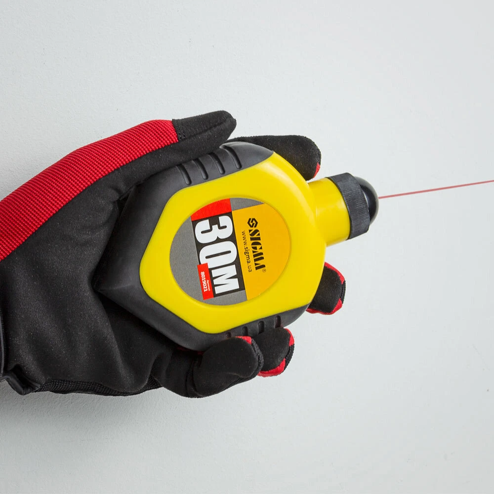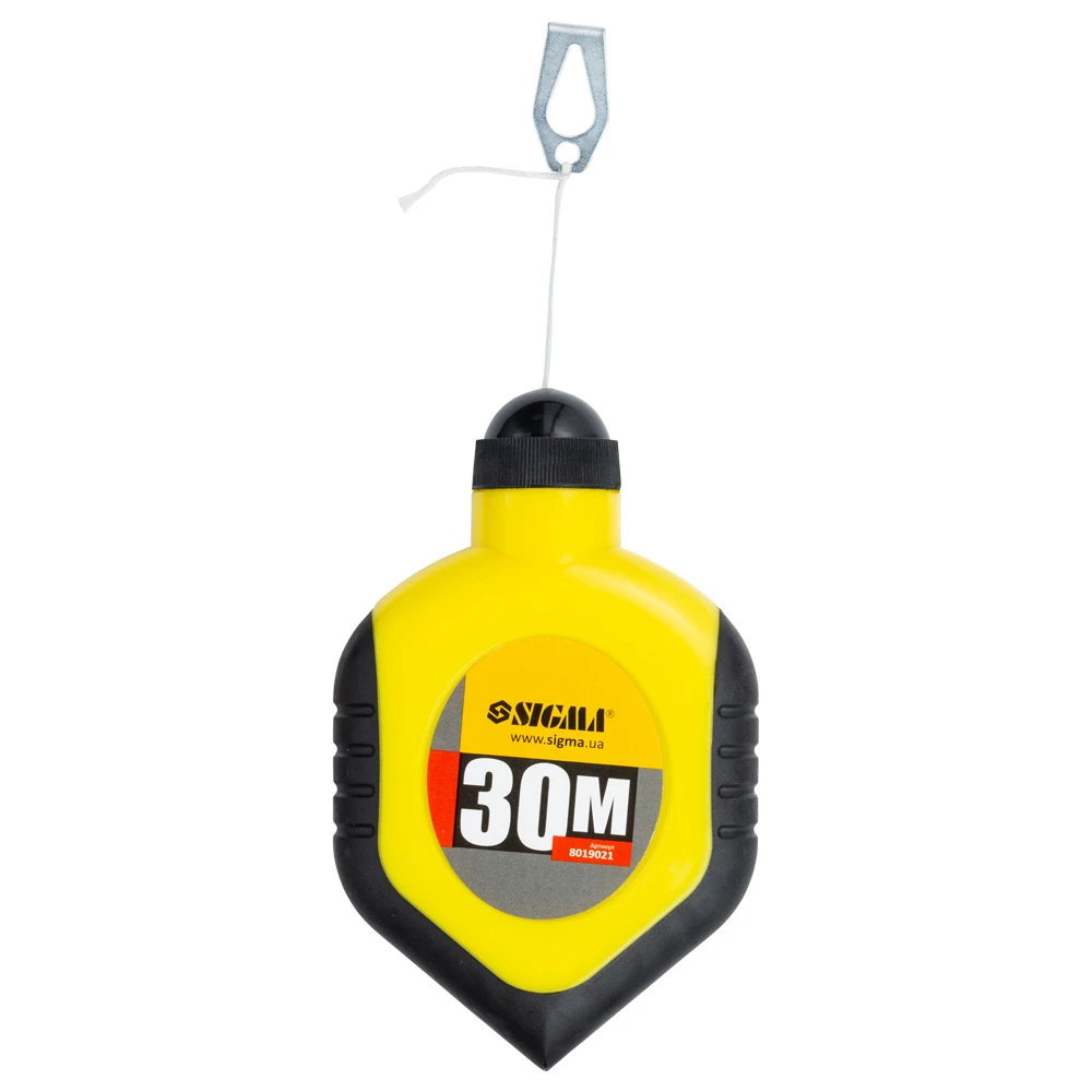 Шнур трасувань 30м Sigma (8019021) - це не складний, але незамінний в будівництві інструмент. Він являє собою контейнер з котушкою всередині нього, і виведеної збоку рукояткою від котушки. На котушці в корпусі намотаний шнурок, і один його край виведений назовні, через отвір. Використовується в якості схилу і для нанесення рівних ліній при виконанні малярно-оздоблювальних робіт.