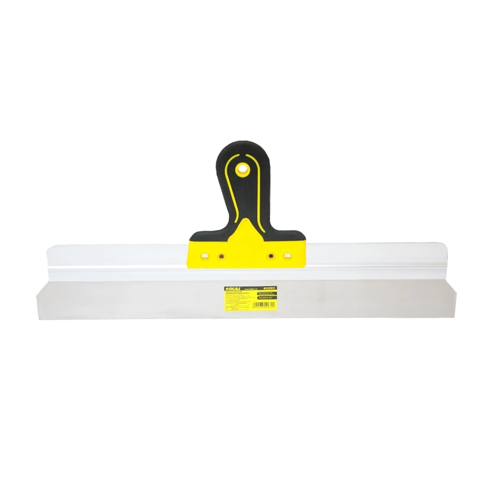 Шпатель фасадний (нержавіючий) профі 400мм SIGMA (8320931) - застосовується для штукатурення зовнішніх і внутрішніх стін, стель, а також для нанесення шпаклівок, мастик і густих клейових сумішей. Робоче полотно виготовлено з високоміцної високолегованої нержавіючої сталі. Завдяки цьому лезо легко повертається у вихідну форму навіть після значних деформуючих навантажень і відрізняється високою зносостійкістю. Завдяки ергономічній формі двокомпонентна прогумована ручка запобігає появі передчасної втоми при виконанні великого об'єму робіт.