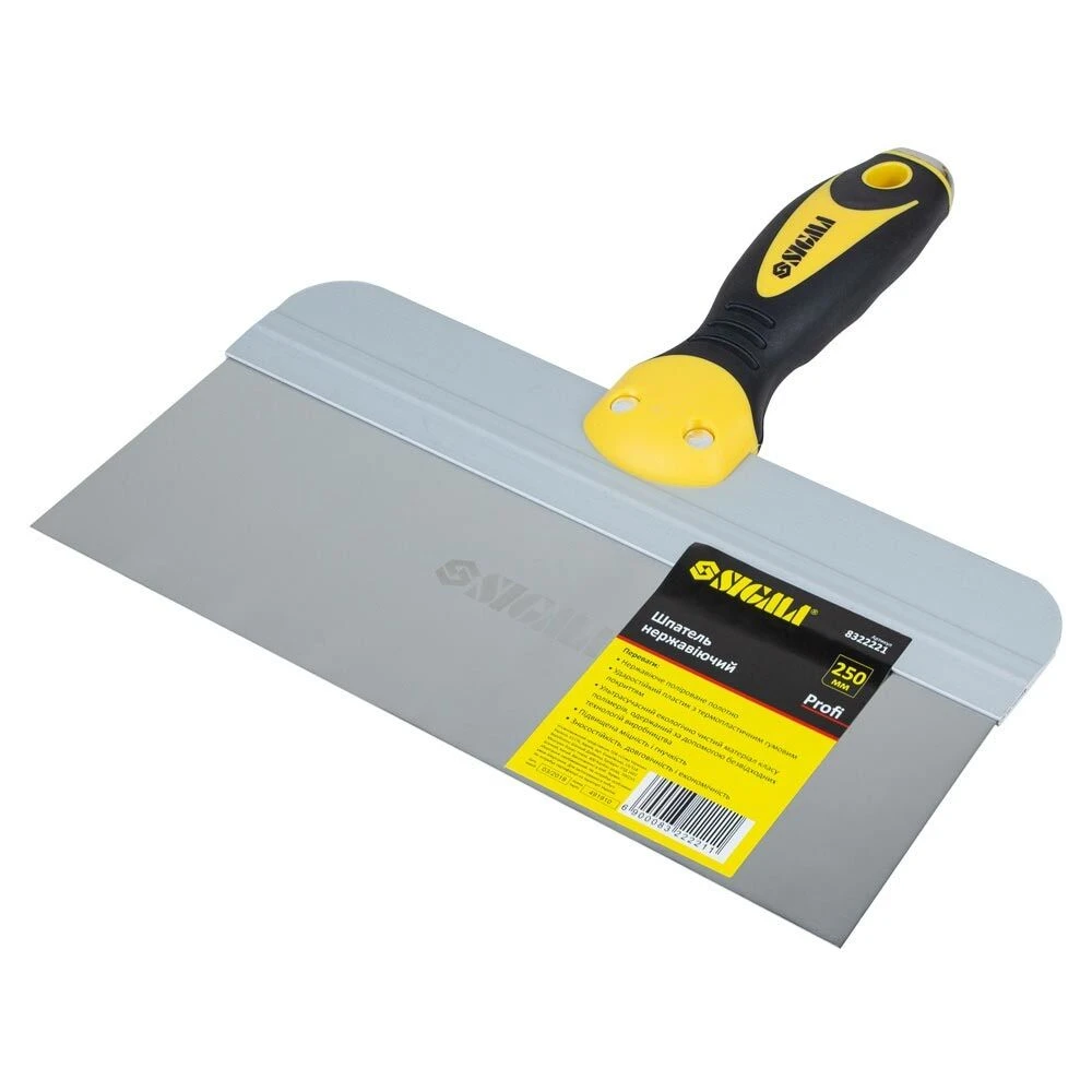 Шпатель нержавіючий Profi 250мм SIGMA (8322221) застосовується для вирівнювання невеликих нерівностей при проведенні зовнішніх або внутрішніх оздоблювальних робіт. В основному застосовується для шпаклівки або штукатурки стін і стель.