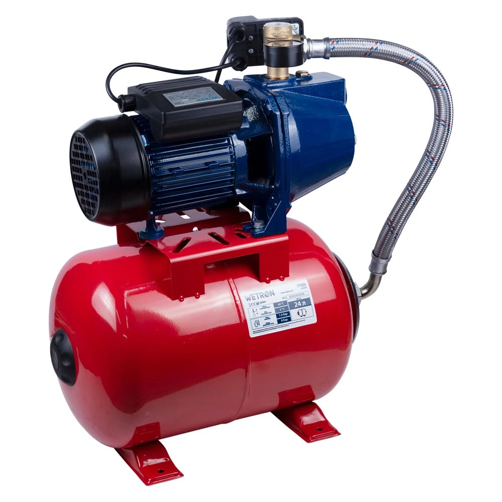 Станція 1.1кВт Hmax 50м Qmax 60л/хв (самовсмоктуючий насос) 24л Україна WETRON JET100А5 (775044/24) обладнана гідроакумулятором об'ємом 24 літра і керуючої автоматикою. Станція призначена для перекачування чистої води і може застосовуватися: для побутового водопостачання, допоміжного обладнання, підйому води в трубопроводах високого і низького тиску, для зрошувальних систем садів і городів, теплиць і парників. Установка устаткування повинна проводитися в місцях, захищених від атмосферного впливу і вологи. Гарантія 12 місяців.