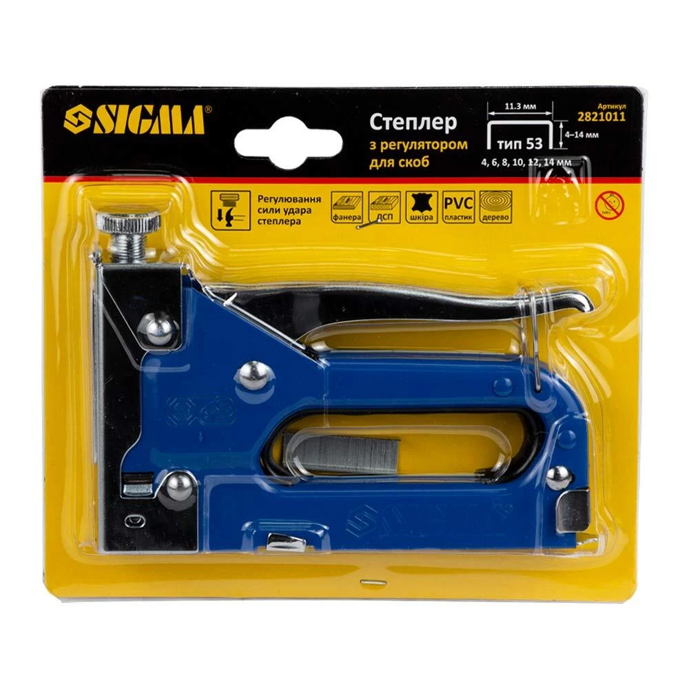 Степлер з регулятором для скоб 4-14мм (синій) SIGMA (2821011)