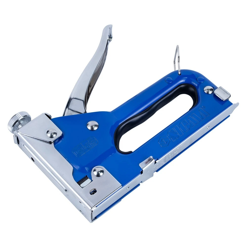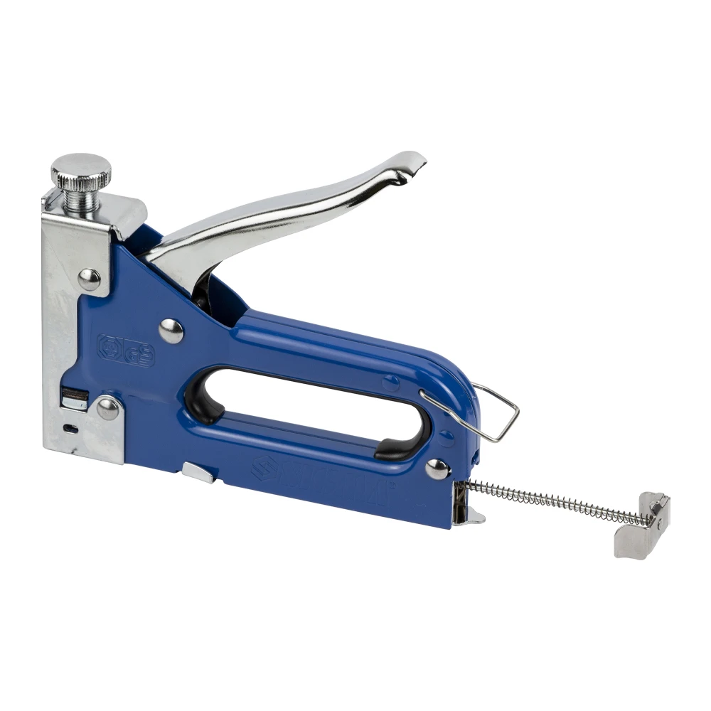 Призначений для швидкого кріплення листового матеріалу (оргаліту, фанери, ДСП, ДВП, плівки, утеплювача) до основи. Незамінний при складанні меблів, укладанні килимового покриття, а також при фіксації утеплювача, обшивці м’яких меблів, багетних роботах. Універсальний інструмент, придатний для роботи зі скобами.