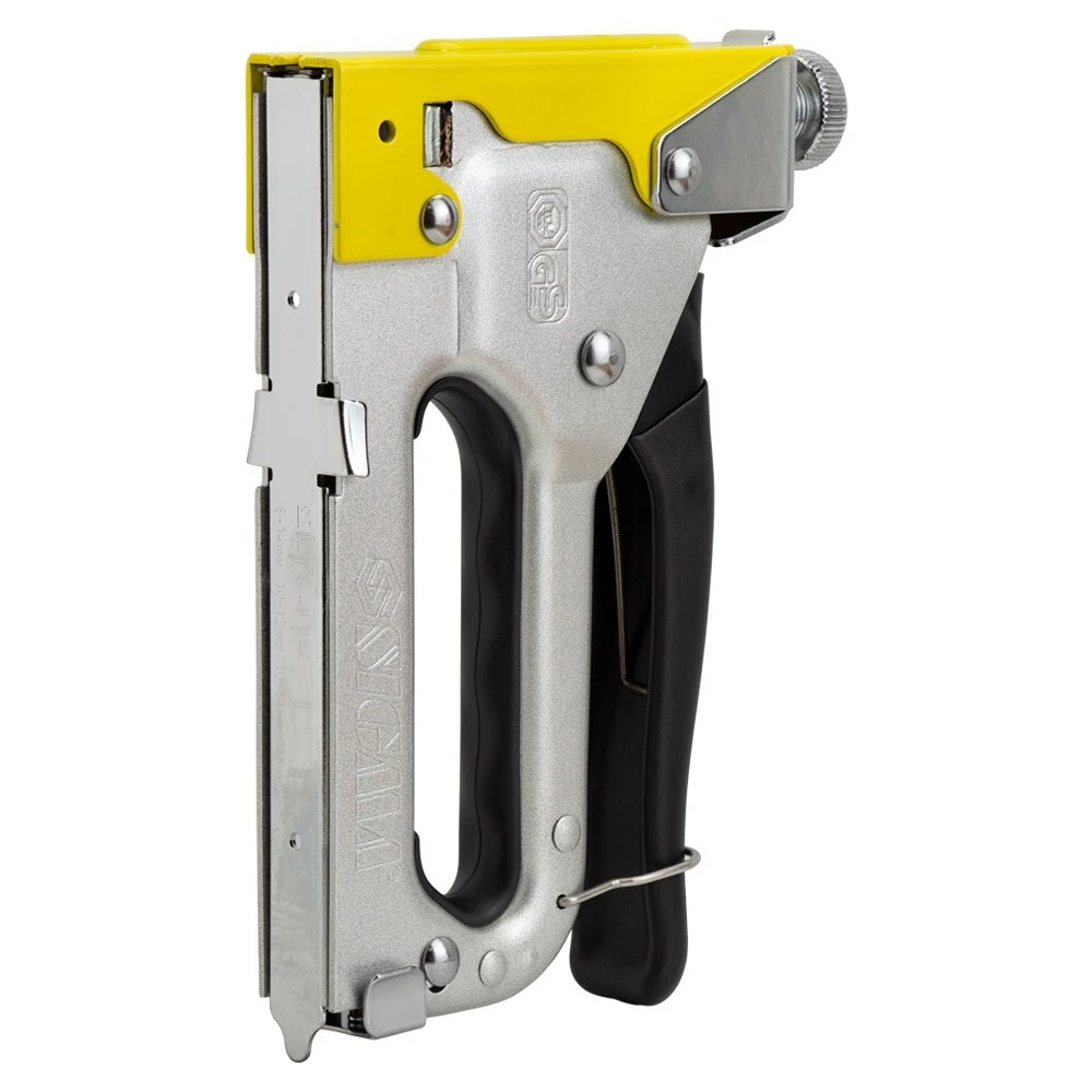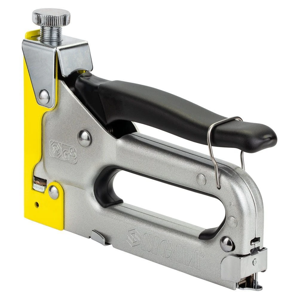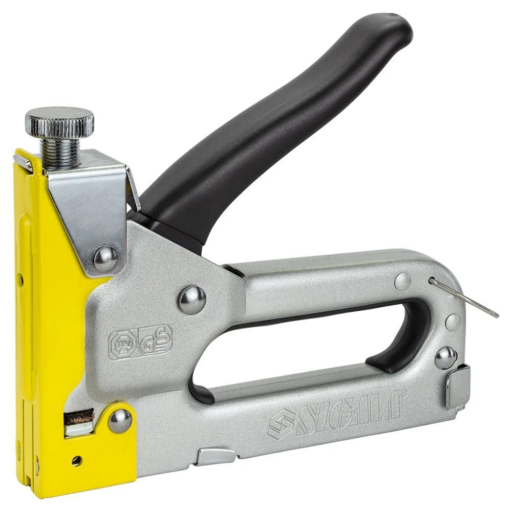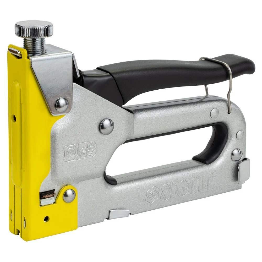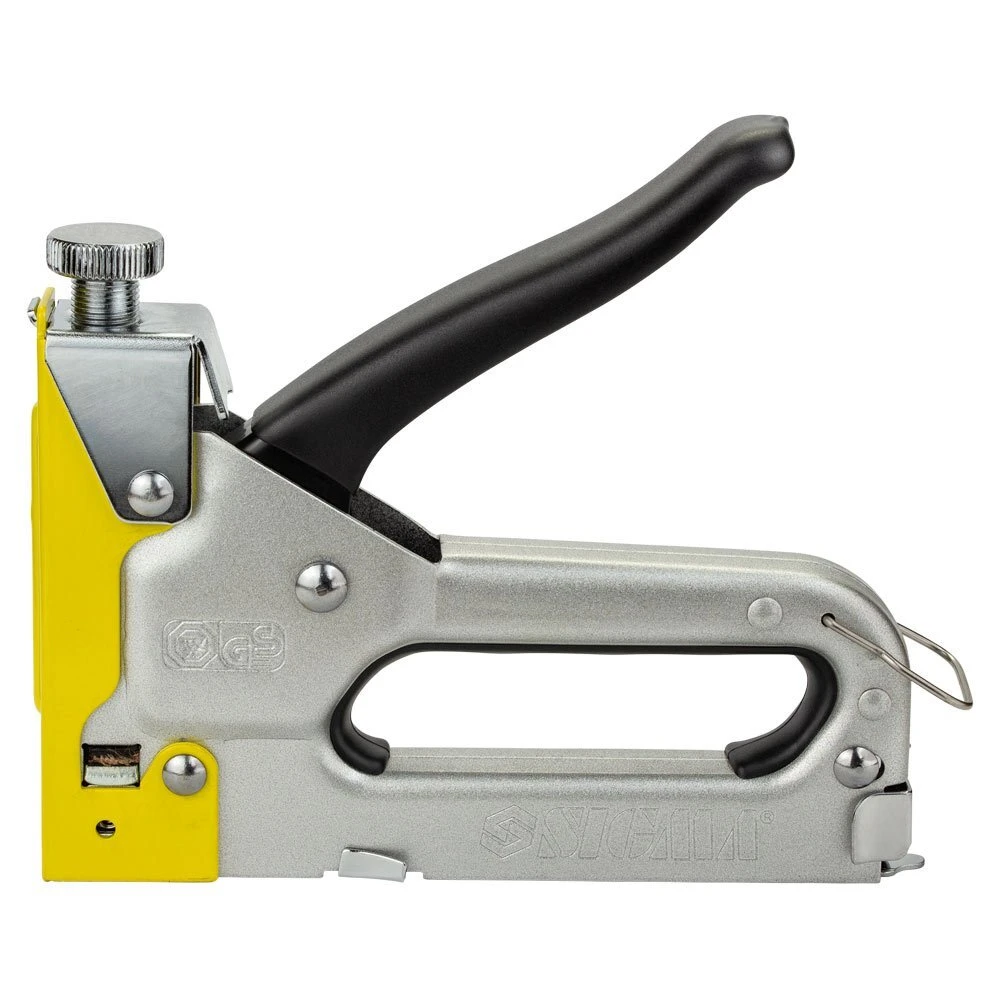 Незамінний при складанні меблів, укладанні килимового покриття, а також при фіксації утеплювача, обшивці м’яких меблів, багетних роботах. Універсальний інструмент, придатний для роботи зі скобами. Деякі моделі дозволяють проводити роботи зі шпильками та цвяхами. Конструкція степлера з регулятором сили удару сприяє зручній роботі зі степлером та тривалому терміну служби.