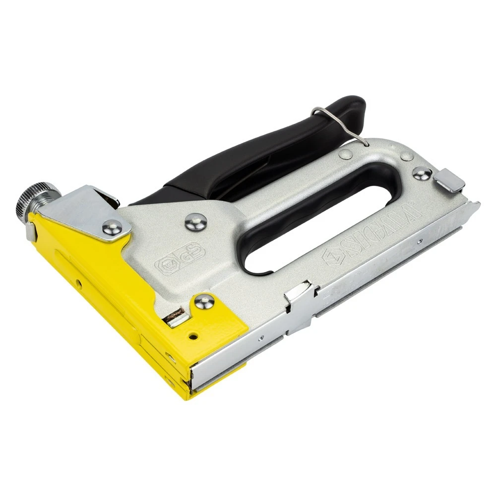 Степлер створений для прискорення і спрощення монтажних, покрівельних і оббивних робіт. Призначений для швидкого кріплення листового матеріалу (оргаліту, фанери, ДСП, ДВП, плівки, утеплювача) до основи.