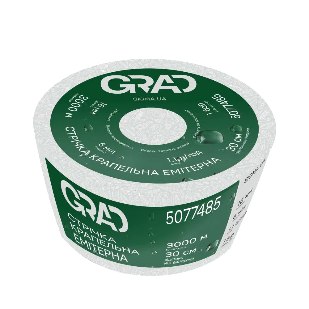 Стрічка крапельна з плоским емітером Ø16мм 30см 6міл 1.38л 1000м GRAD (5077315)